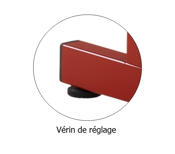 Piétement en tube 40/27 d'une épaisseur de 1.5 mm, poutre support plateau en tôle acier 12.5/10e, bras support plateau en tôle acier 40/10e; revêtu époxy.