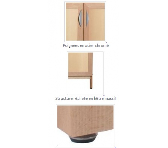 Piétement réalisé en hêtre massif - M3. Composants plastiques - M4.